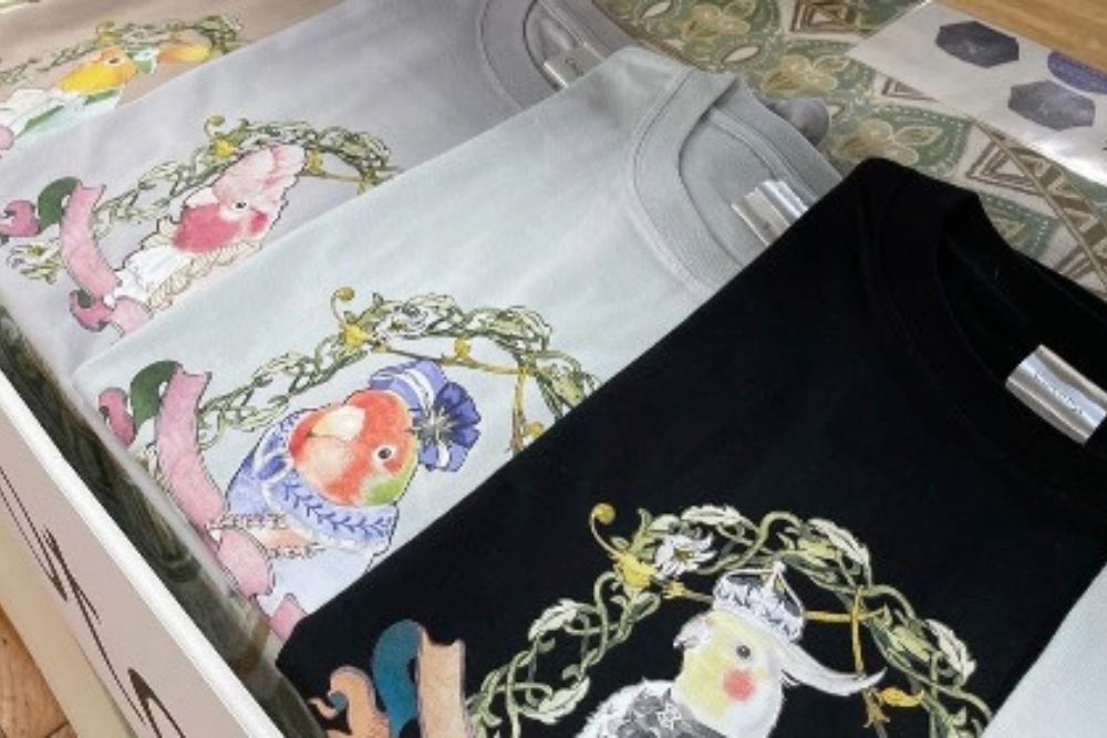 鳥柄や鳥モチーフをあしらった雑貨やTシャツといったアパレルも取扱い、暮らしの中で小鳥さんとの絆を自然に感じていただけるよう心がけております。