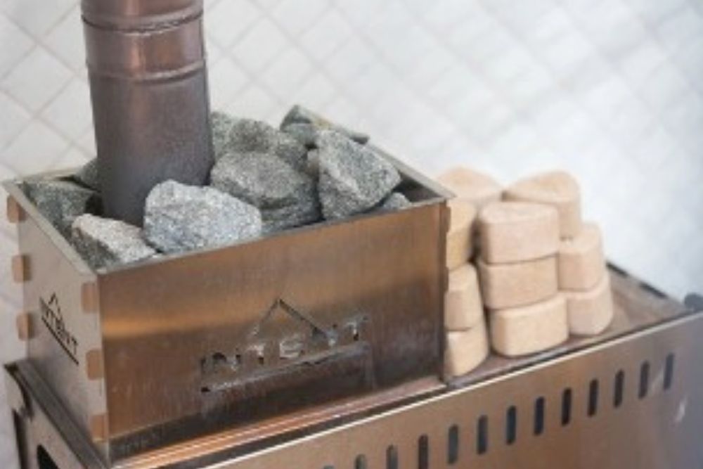 薪ストーブで110度まで熱したテント内でのロウリュ体験は、フィンランド式の本格的な蒸気浴を楽しめます。